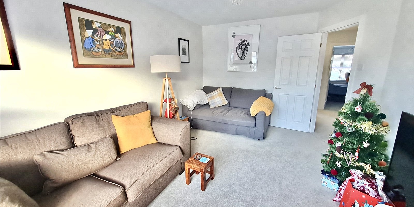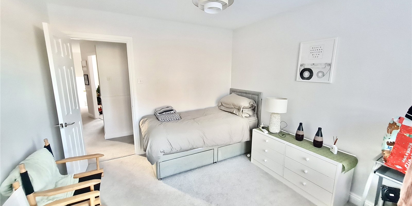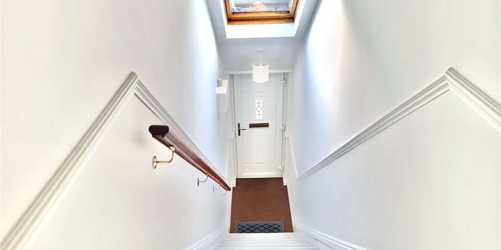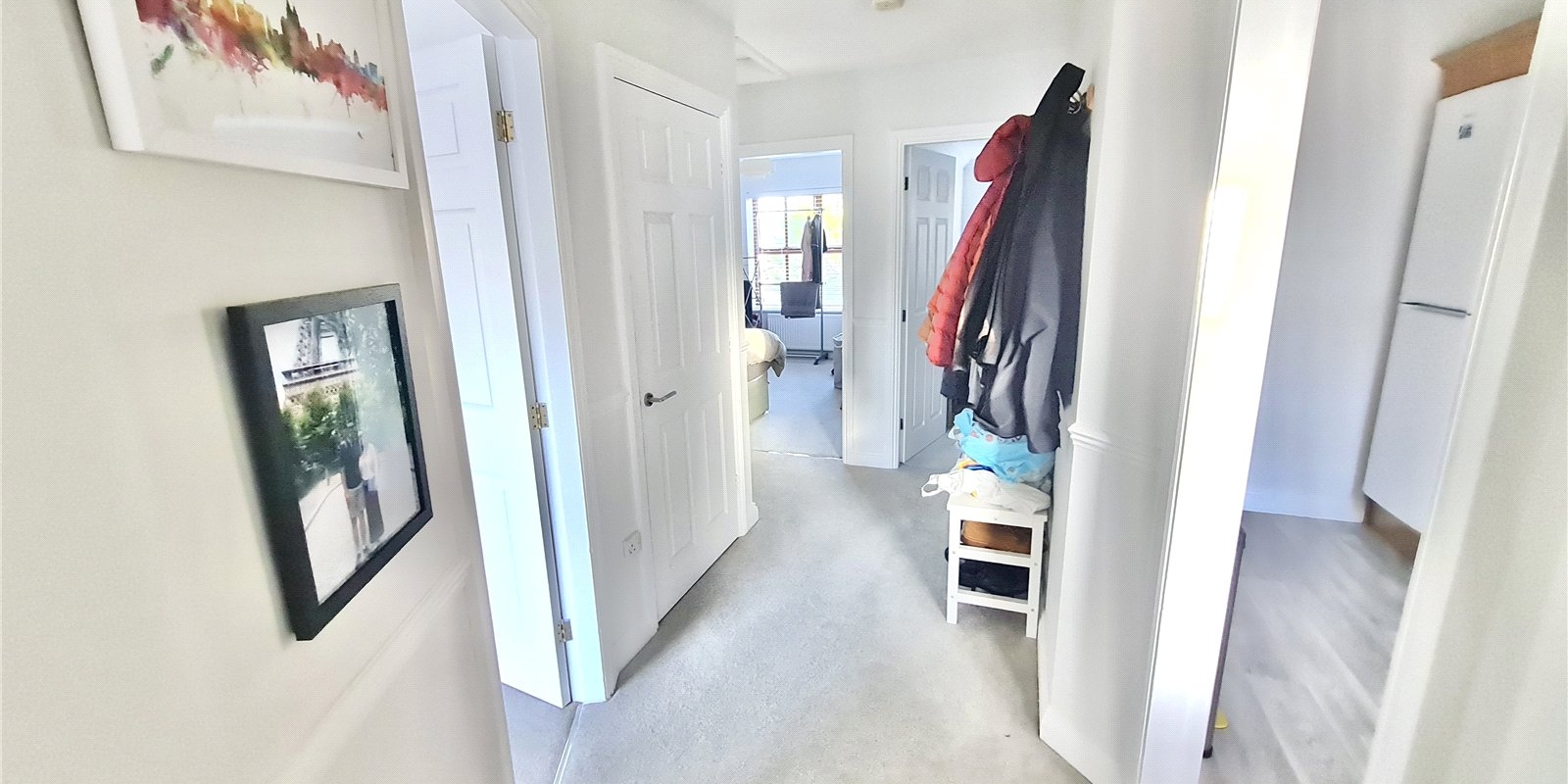 The property is accessed via its own private entrance at ground floor level, creating a sense of privacy more commonly associated with a house rather than an apartment. From here, a staircase rises to the first floor where a spacious and welcoming landing provides access to all rooms. The internal accommodation is both well-proportioned and thoughtfully arranged, comprising two generously sized bedrooms, a bright and comfortable living room, a separate fitted kitchen, and a modern bathroom. The newly installed carpets and flooring enhance the overall presentation, giving the apartment a fresh, contemporary feel throughout.